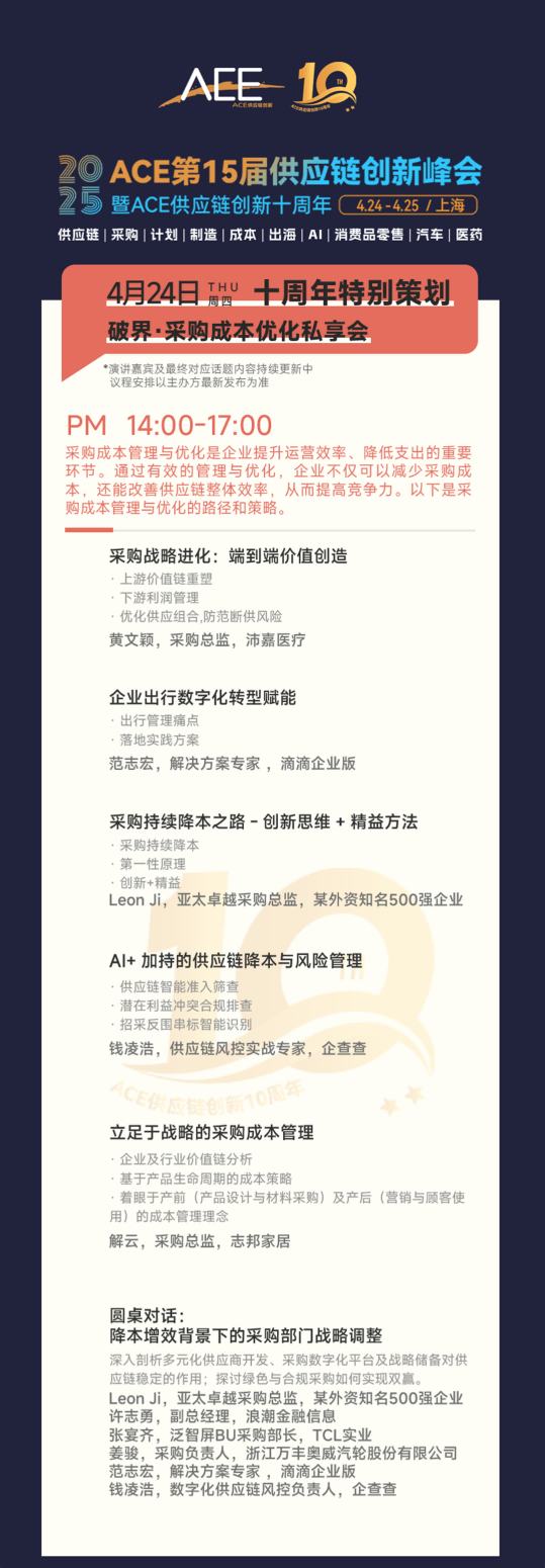 ace2025全局概览传送门👉:1500 供应链采购人齐聚上海!携手mit、宁创、ism china、100 供应链领袖,共同探讨80 前沿议题、落地实践!