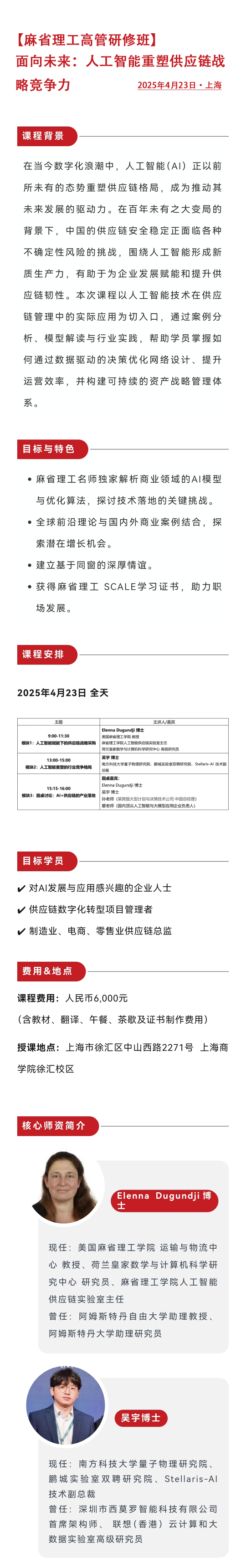 课程目标与特色:麻省理工名师独家解析商业领域的ai模型与优化算法,探讨技术落地的关键挑战;全球前沿理论与国内外商业案例结合,探索潜在增长机会;建立基于同窗的深厚情谊;获得麻省理工 scale学习证书,助力职场发展。