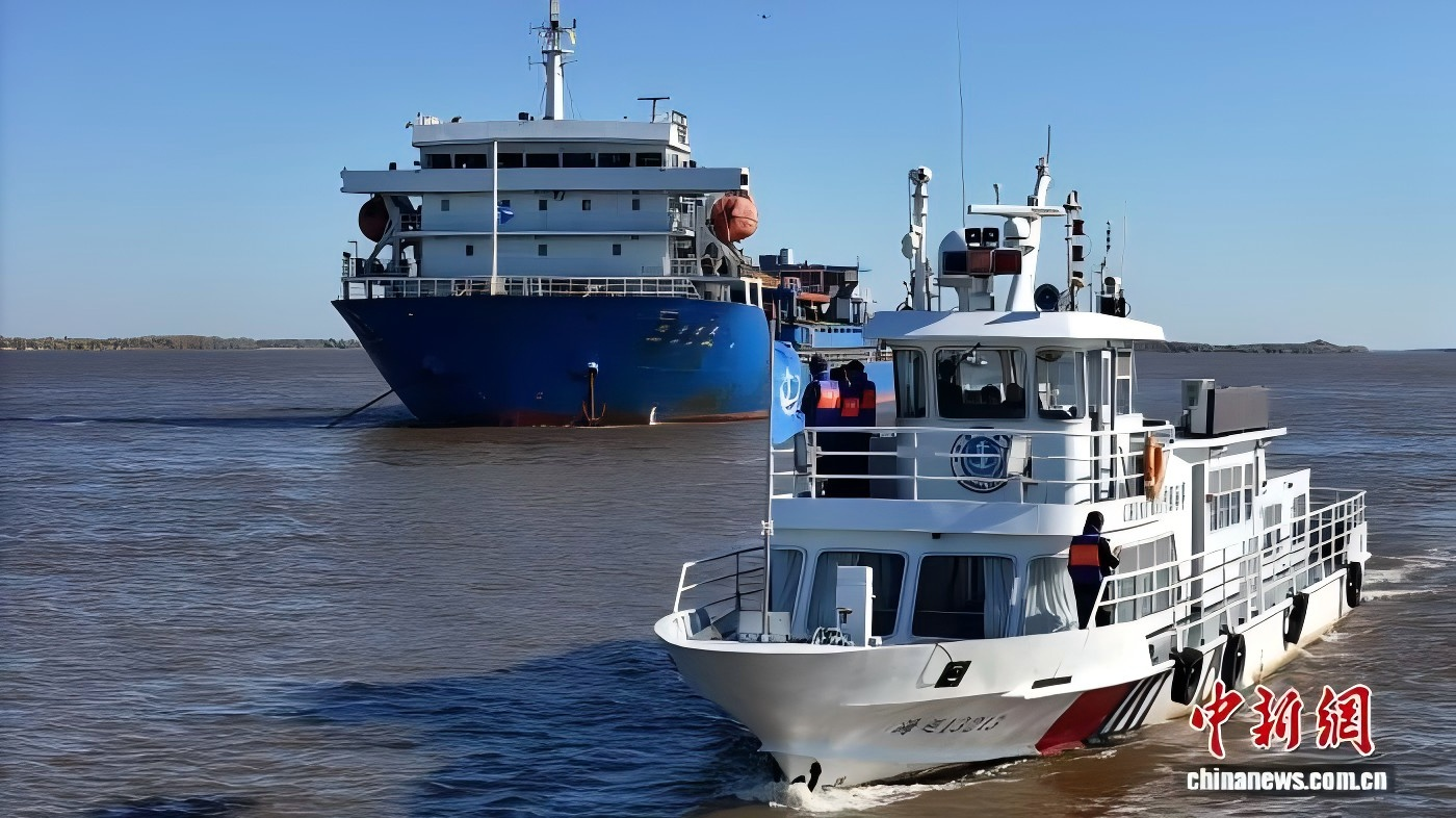 黑龙江海事部门严格落实江海联运船舶水上交通安全保障方案,维护通航秩序,实时关注航道水深,为船舶航行盯紧前哨,全面保障通航环境畅通无阻,确保江海联运船舶安全抵港。