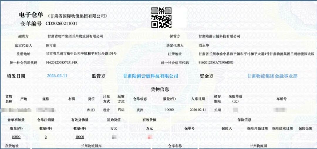 甘肃国际物流集团首笔电子仓单融资业务成功落地-ag平台入口