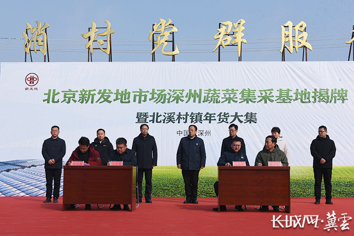 活动现场,“北京新发地市场深州蔬菜集采基地”揭牌后,深州市蔬菜产业协会与北京新发地市场采购商联盟签订长期供货协议,该市多家重点蔬菜合作社与北京新发地市场入驻商户签订首批采购合同,将进一步拓宽深州蔬菜外销渠道、提升产品附加值与市场竞争力,助力农业增效提供坚实保障。
