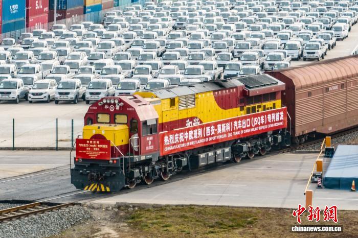 图为中欧班列汽车出口专列。国铁西安局供图