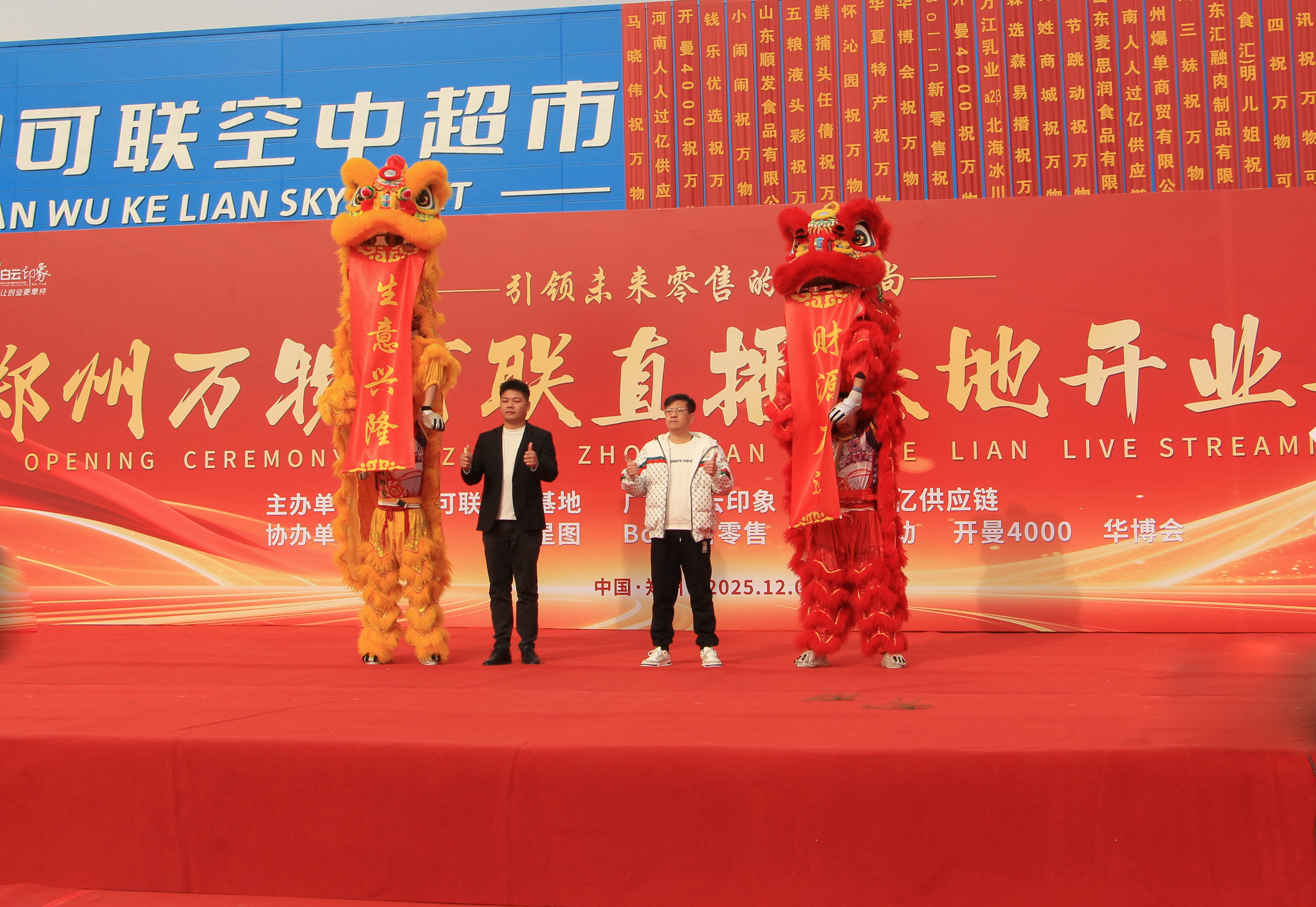活动尾声,12位剪彩嘉宾共同为万物可联空中超市电商直播基地剪彩,祥狮点睛仪式象征着基地将如祥狮般腾飞发展,为郑州、为河南、为中国低空经济与直播电商的融合发展注入强劲动力。