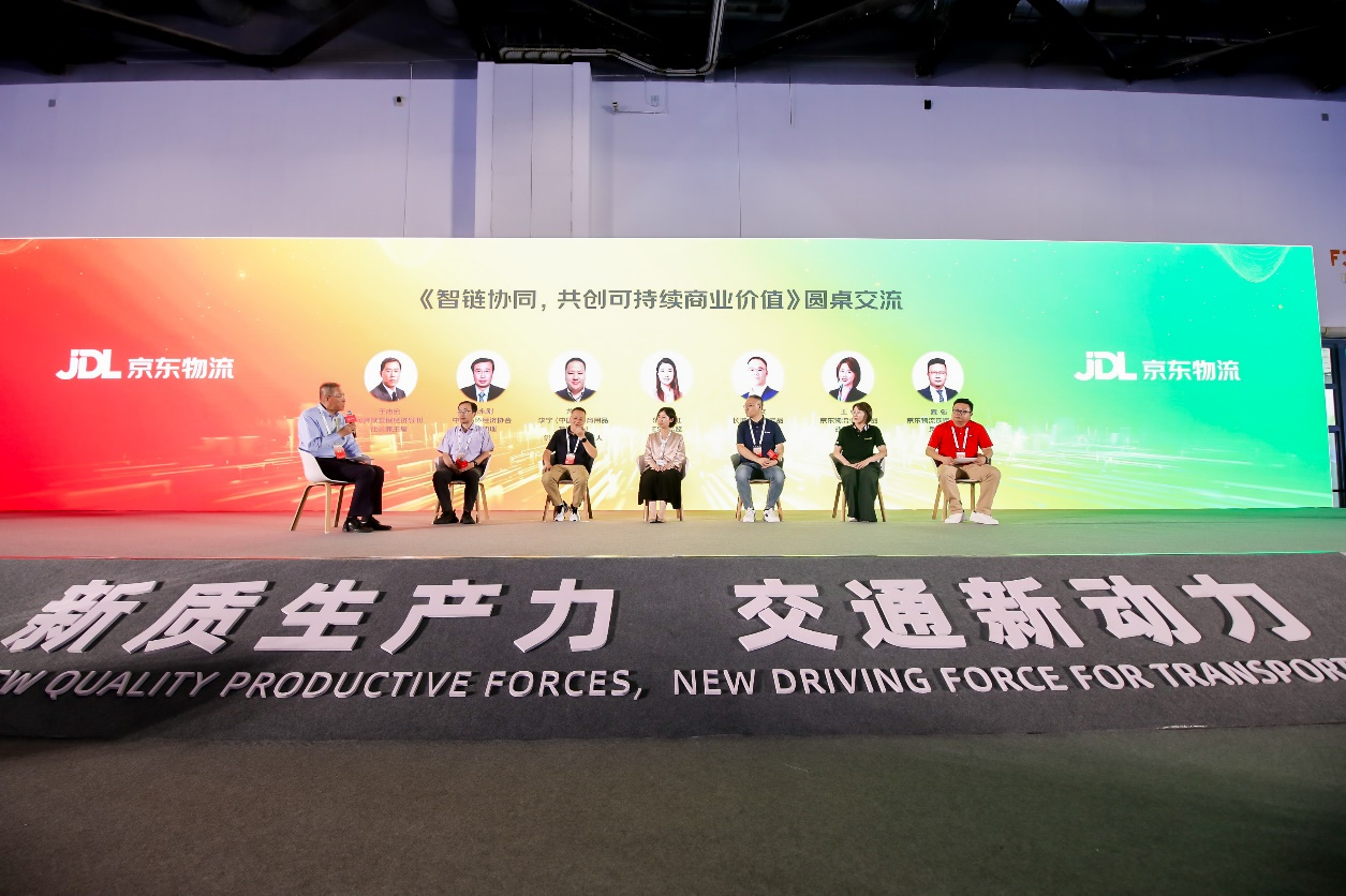 在于志宏社长的主持下,来自中国循环经济协会的潘永刚先生、来自李宁的龙炜先生、东方雨虹esg总监陈莉女士、来自长城商用车的卢文先生,以及京东物流低碳产品战略专家王秭女士、京东物流铁路运力部负责人夏强先生,围绕“智链协同共创可持续商业价值”主题开展了圆桌研讨。发言嘉宾分别分享了各自在可持续发展领域的特色实践与思考,以及从可持续共同愿景出发推动开展合作,尤其是与京东物流开展合作所创造的esg价值,同时也对未来更多开展碳数据、更多元的esgag平台入口的解决方案合作,发挥头部企业引领作用,打造绿色低碳循环朋友圈提出了期待。