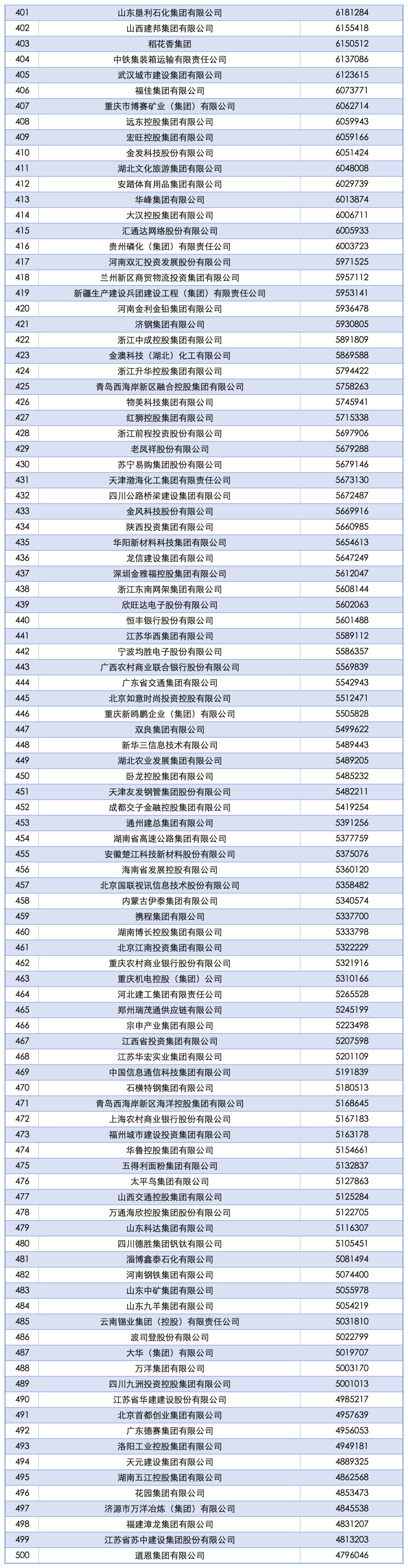 9月15日,中国企业联合会、中国企业家协会发布“2025中国企业500强”。这份榜单以2024年企业营业收入为入围标准,入围门槛较上年提高5.79亿元,达到479.6亿元。