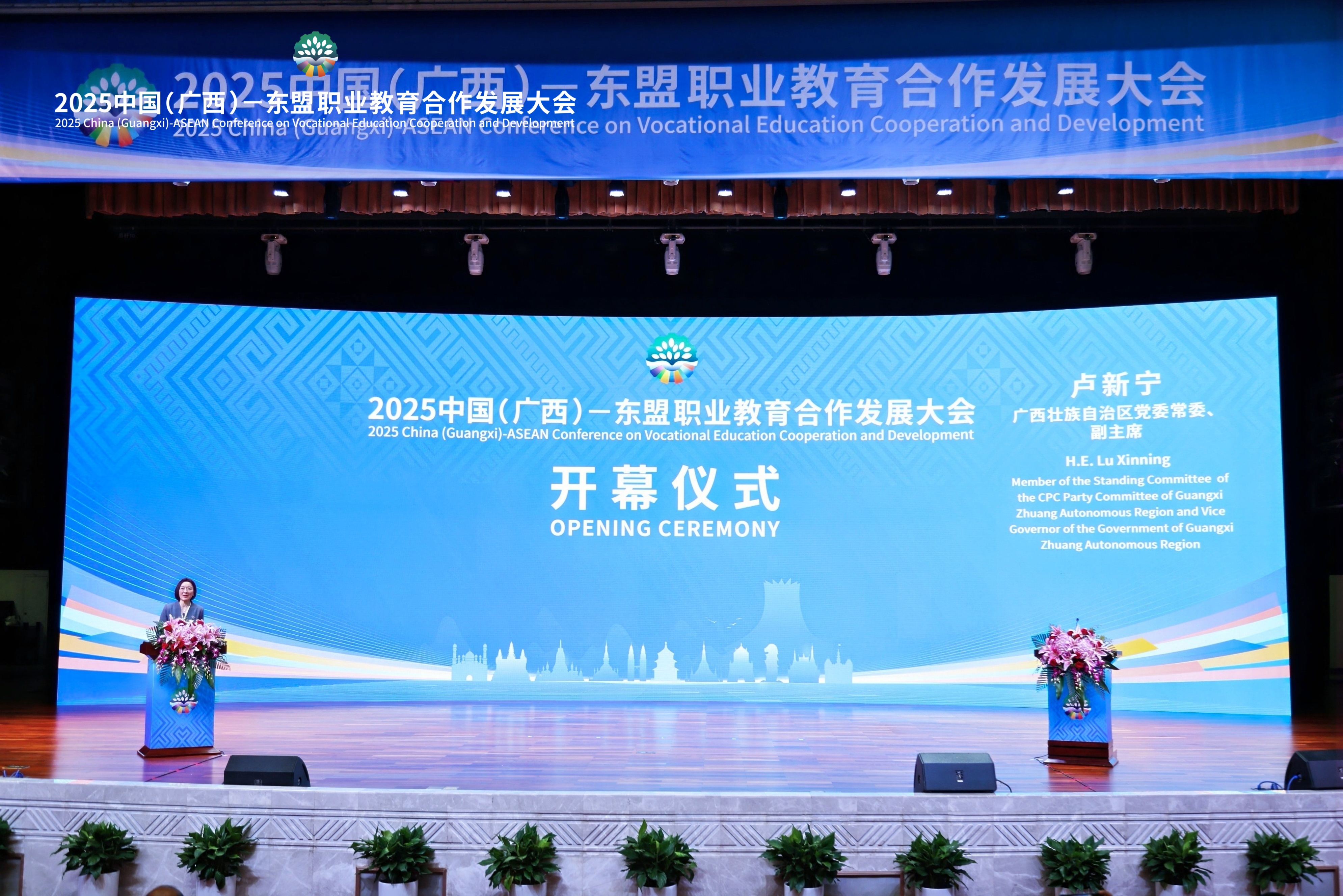 2025年9月 15日,由教育部指导、广西壮族自治区人民政府主办中国(广西)—东盟职业教育合作发展大会在南宁举办,广西壮族自治区党委常委、副主席卢新宁,柬埔寨劳动与职业培训部国务秘书谢顾所,印度尼西亚人类发展与文化事务统筹部副部长欧加·达罗亚,老挝教育与体育部副部长萨姆兰·潘卡冯,缅甸教育部副部长佐敏,中国教育部职业教育和成人教育司副司长李智,中国物流学会副会长兼秘书长郭肇明和来自东盟各国以及香港训练局的领导、专家和嘉宾出席大会。