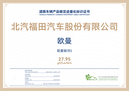福田欧曼银河5碳足迹量化标识证书