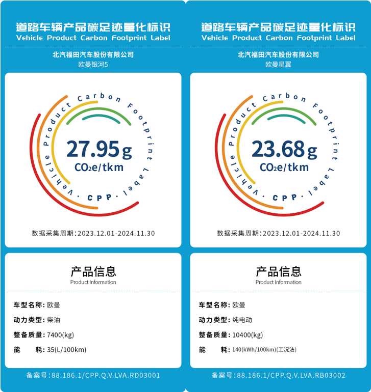 福田欧曼银河5、欧曼星翼碳足迹量化标识