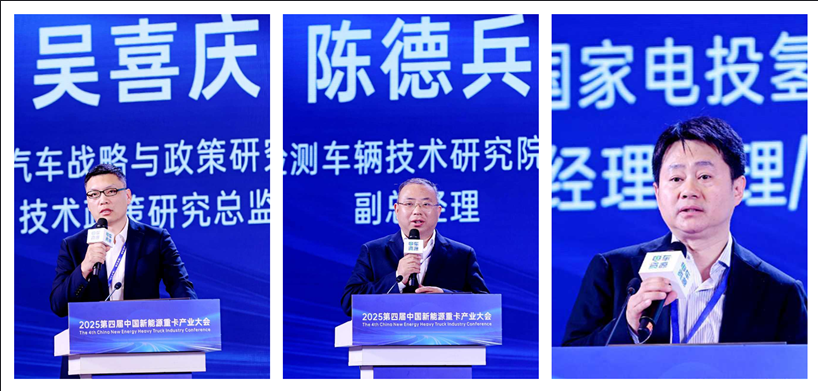 中国汽车战略与政策研究中心技术政策研究总监吴喜庆、招商局检测车辆技术研究院有限公司副总经理陈德兵、国家电投氢能公司总经理助理/技术总监陈平则从政策、产品检测、新能源在重卡领域的推动作用,为产业发展指明方向。