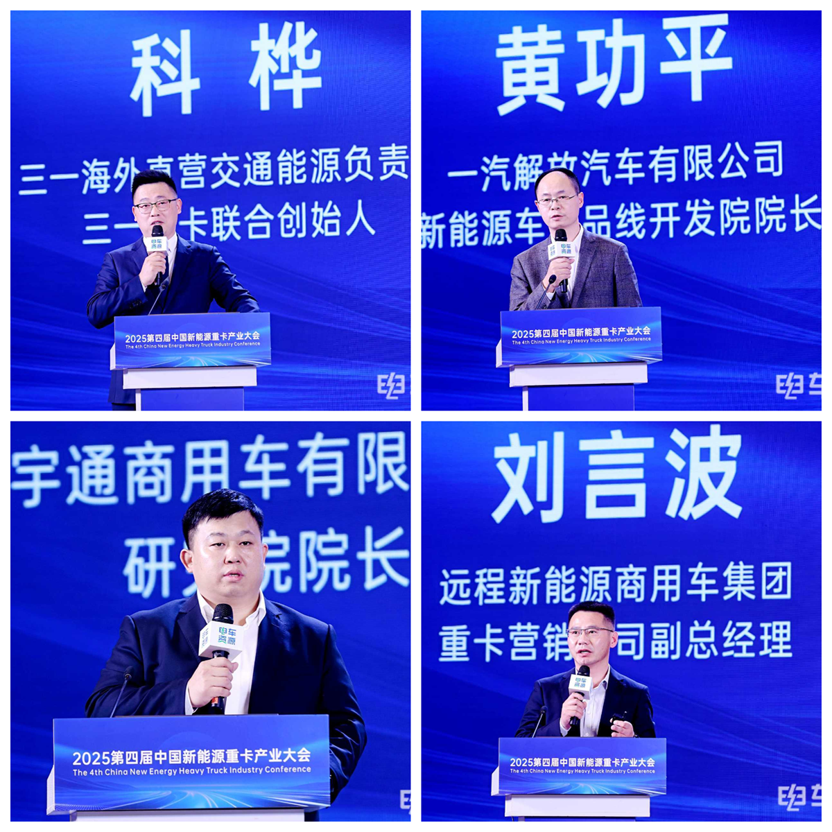 三一海外直营交通能源负责人、三一重卡联合创始人科桦,一汽解放汽车有限公司新能源车产品线开发院院长黄功平,宇通商用车有限公司研究院院长范晓严,远程新能源商用车集团重卡营销公司副总经理刘言波,分别从企业战略、技术创新、市场突围等角度发表精彩演讲,共同勾勒出新能源重卡产业的发展蓝图。