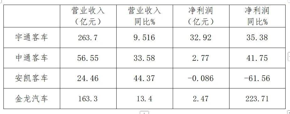 今年前三季度,4家上市客车企业实现营业总收入508亿元,同比增长14.4%;净利润38亿元,同比增长41.1%。