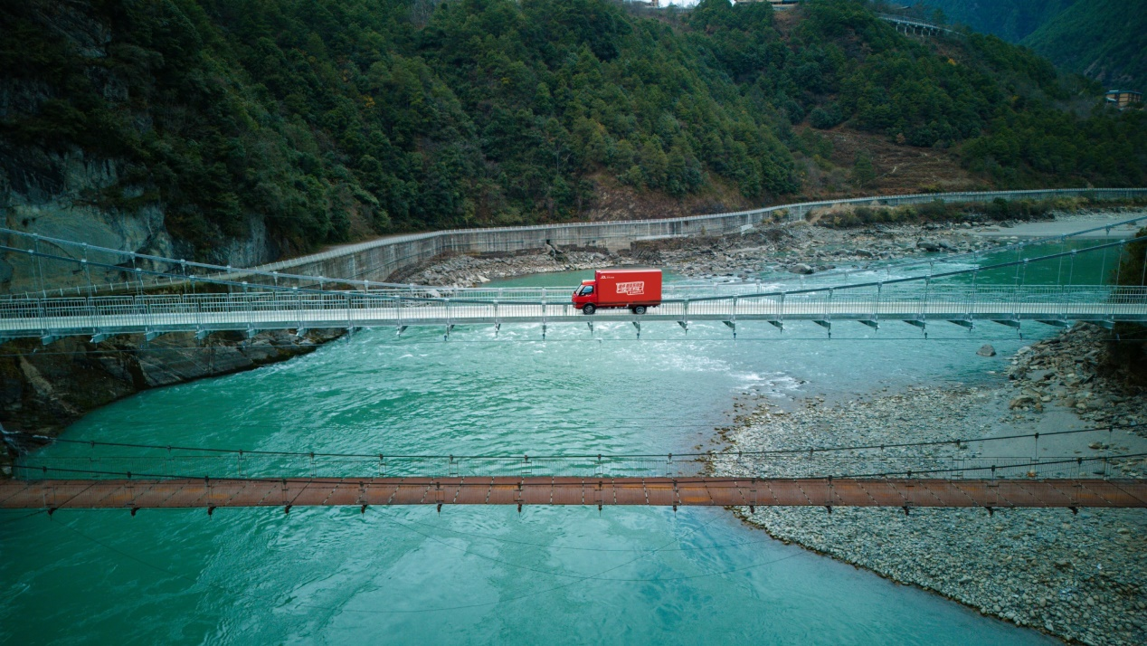 元旦上午11点,钟久旺驾车将新年第一批快递送往边境要冲“丙中洛”,车身上“京东物流”的红色标志在这片边境地带格外醒目。