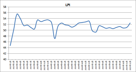 中国物流与采购联合会发布的2025年12月份中国物流业景气指数为52.4%,环比回升1.5个百分点。主要指标中,业务总量指数、设备利用率指数、新订单指数、资金周转率指数、从业人员指数处在扩张区间且环比保持回升。全年数据来看,四个季度景气指数均值稳定回升,第四季度后两个月连续回升,12月景气指数为今年最高,反映出实体经济物流业务需求持续活跃。