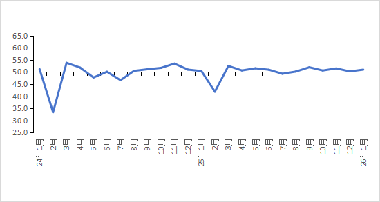 1月,平均库存量为51.6%,较上月增加了2.7个百分点,库存周转次数指数为54.7%,较上月提高3.1个百分点,设备利用率为50.4%,仍处于扩张区间。以上说明,节前备货需求推动企业库存水平提升,同时企业通过优化仓储系统调度,实现库存周转速度加快,物流运营的精细化水平与周转效率持续改善。此外,库存周转次数处于高景气区间反映出物流环节的流通效率处于较好水平。