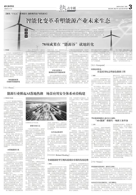 新一轮工业革命正在全球范围内酝酿,其核心驱动力是数智技术与能源产业的深度融合。“十五五”规划建议明确指出,“加快建设新型能源体系,积极稳妥推进和实现碳达峰,加快形成绿色生产生活方式。”在这一顶层设计指引下,我国能源产业正经历着新的探索与变革。能源行业部署了大量新型人工智能装备,既能助力提升运营效率、降低运营成本,也能保障生产安全,传统能源行业正在主动拥抱人工智能进行升级。随着产业政策、技术标准、基础设施建设等方面前瞻布局,人工智能与能源产业的深度融合已成为全球能源转型进程中不可逆转的趋势。