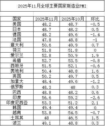 2025年11月全球主要国家制造业pmi-ag平台入口