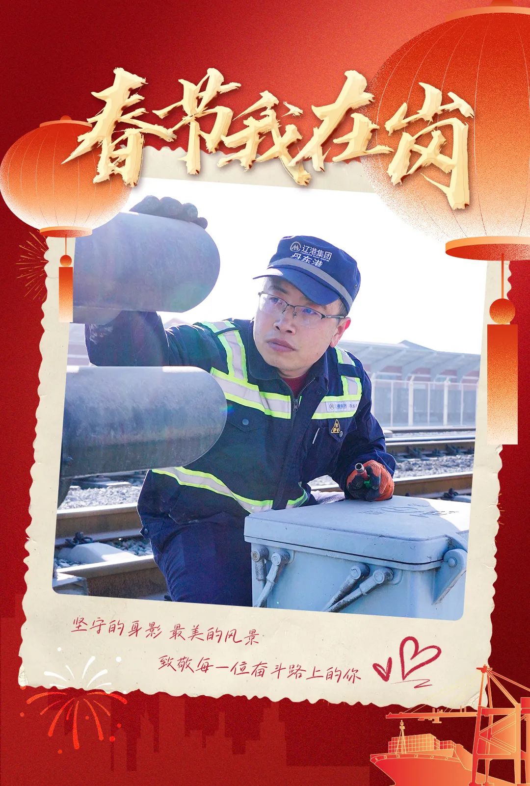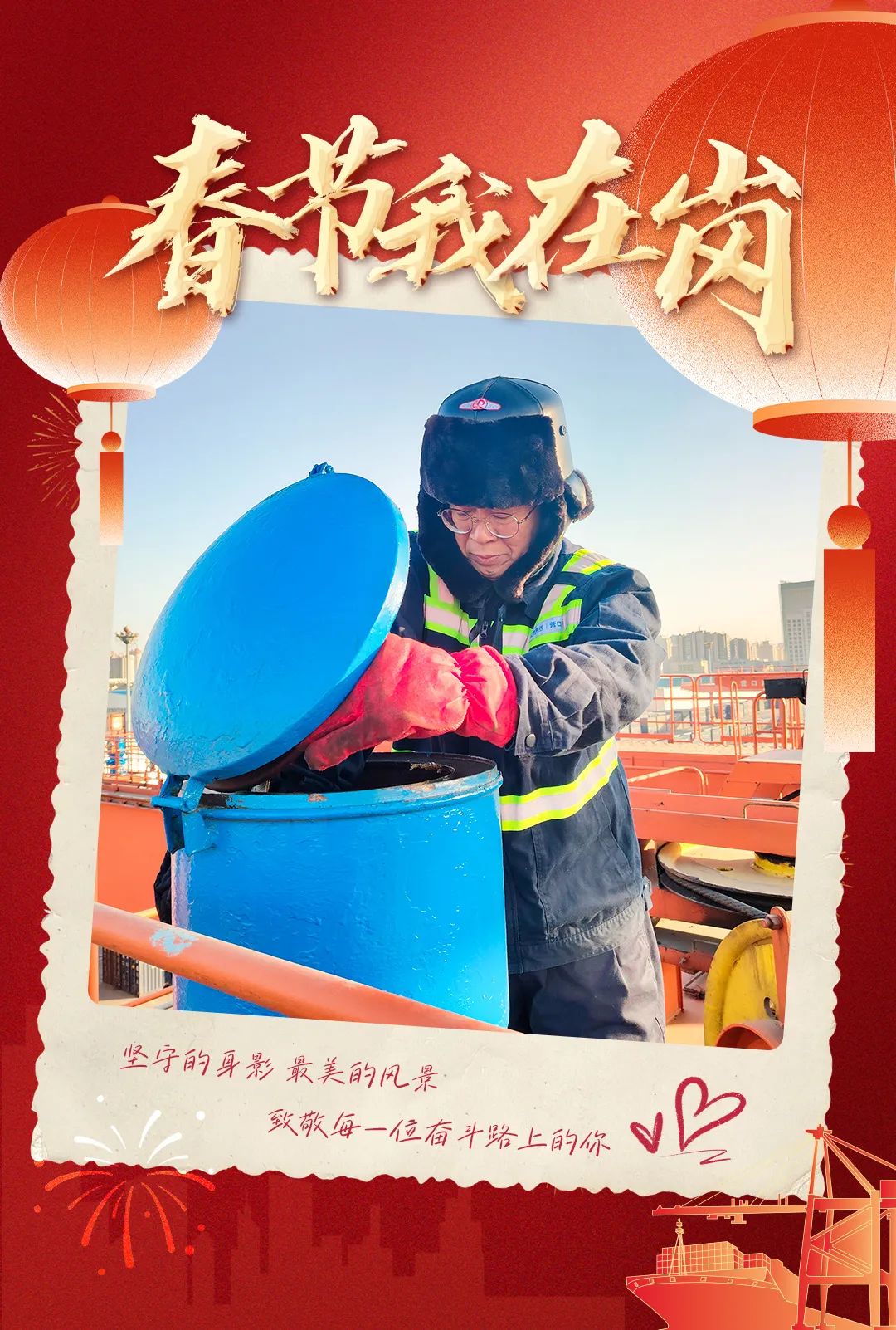 大年初七,年味犹浓。在港口工作28年,这里早已成为杨晓光第二个家。作为一名龙门吊维修钳工,他深知设备的健康状态,是港口高效运转的生命线,唯有亲自完成所负责机械的保养工作,方能心安。每一颗螺栓的紧固,都承载着安全的重量;每一股钢丝绳的润滑,都关乎着作业的流畅;每一副电磁吊具的安全标准,都是对效率的守护。在这个特殊的日子里,杨晓光和同事们选择坚守岗位,用双手捍卫港口大型机械的运行安全,让每一艘货轮都能顺利启航,让每一批货物都能准时送达。
