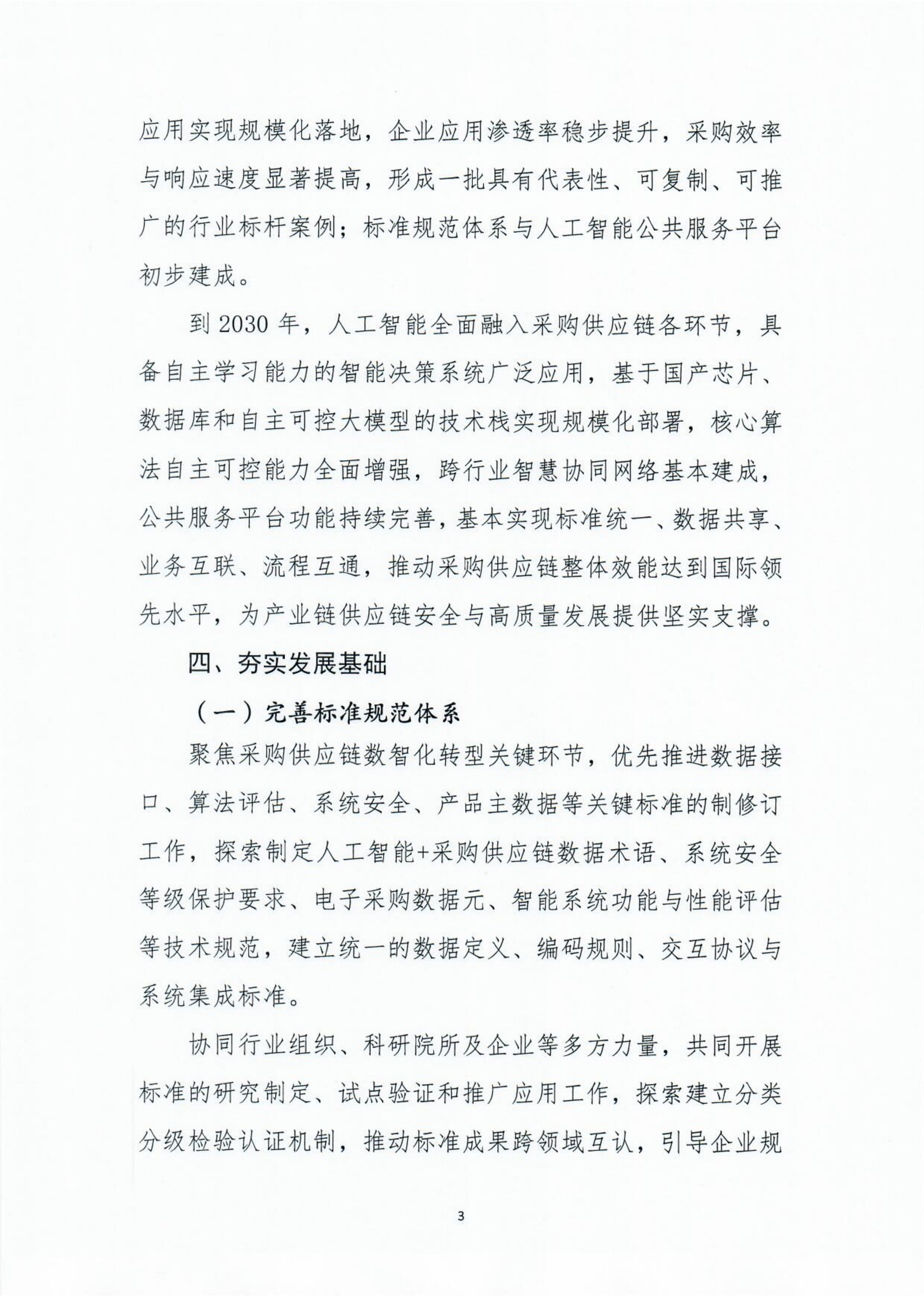 为贯彻落实国务院《关于深入实施“人工智能 ”行动的意见》及商务部等8部门《加快数智供应链发展专项行动计划》的有关部署,系统推进人工智能技术在采购与供应链领域的融合创新与规范发展,中国物流与采购联合会(以下简称“中物联”)于12月1日发布国内首个人工智能专项应用指南——《人工智能 采购供应链应用指南》(以下简称《指南》)。