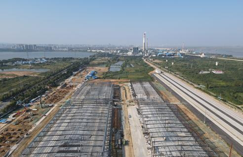 近日,湖南城陵矶新港水公铁集装箱多式联运示范工程正式通过交通部、国家发改委验收,将授予“国家多式联运示范工程”称号。自2020年岳阳获批国家港口型物流枢纽城市以来,作为主要承载的湖南城陵矶新港港口物流园(多式联运)攻坚克难、主动作为,全力推动项目建设。11月8日,记者来到物流园现场看见4栋钢结构仓库主体搭建已全部完工,工人们正在进行屋面板安装,施工现场热火朝天。